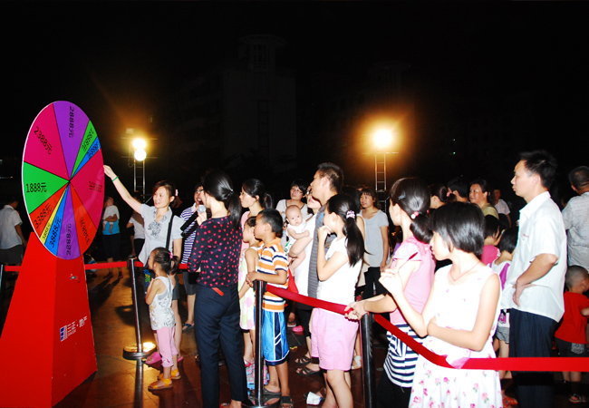 30分鐘后,搖獎活動開始。業主們排隊進入搖獎區。主持人介紹完活動規則之后,業主們紛紛按捺不住想要一試手氣。